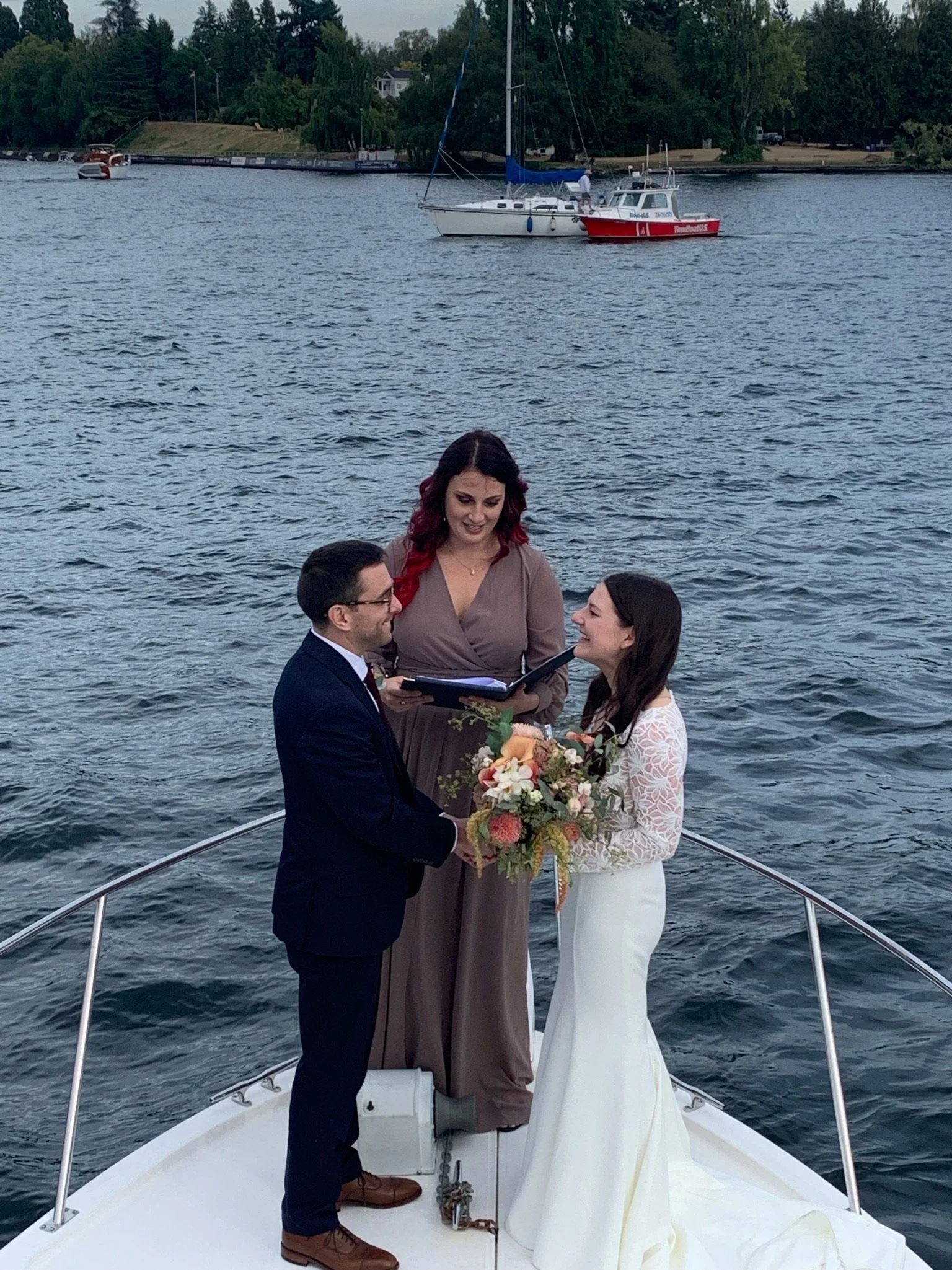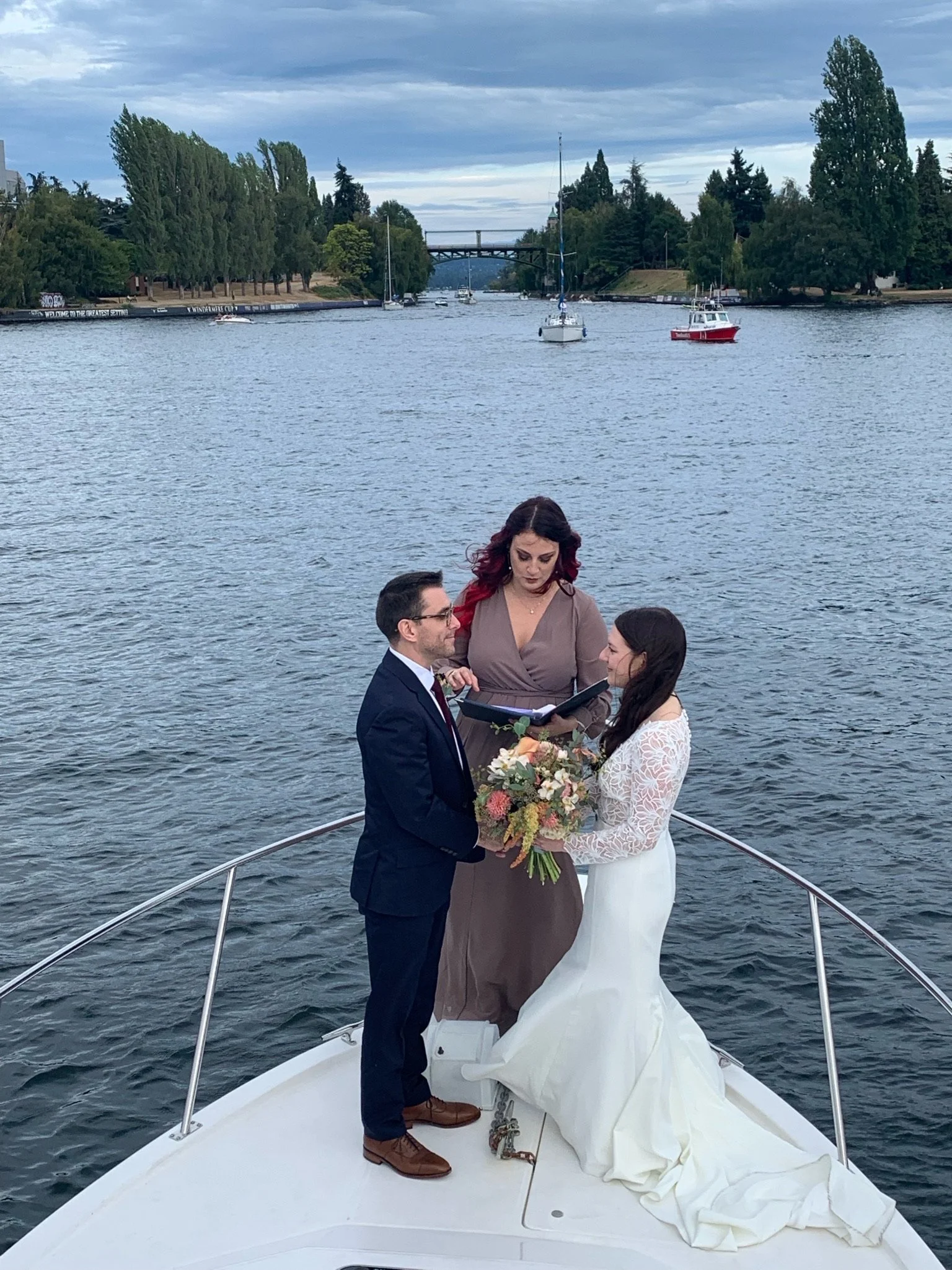 On September 4, 2021 we were legally married by our beloved friend, Gillian Miller. What began as a plan to have a simple courthouse ceremony evolved into a deeply rewarding civil ceremony conducted on Lake Union. We wanted to begin our marriage in our new hometown of Seattle before traveling to Italy to exchange our vows in the Dolomites. We are immensely thankful that our dear friends, David and Amy Syen, joined us to act as our official witnesses.